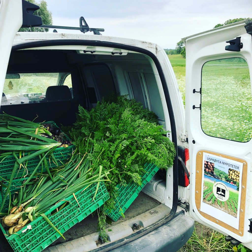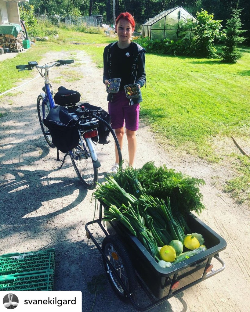 Daglig leder søndre klar for avreise med elsykkel og dagsferske grønnsaker 🌱